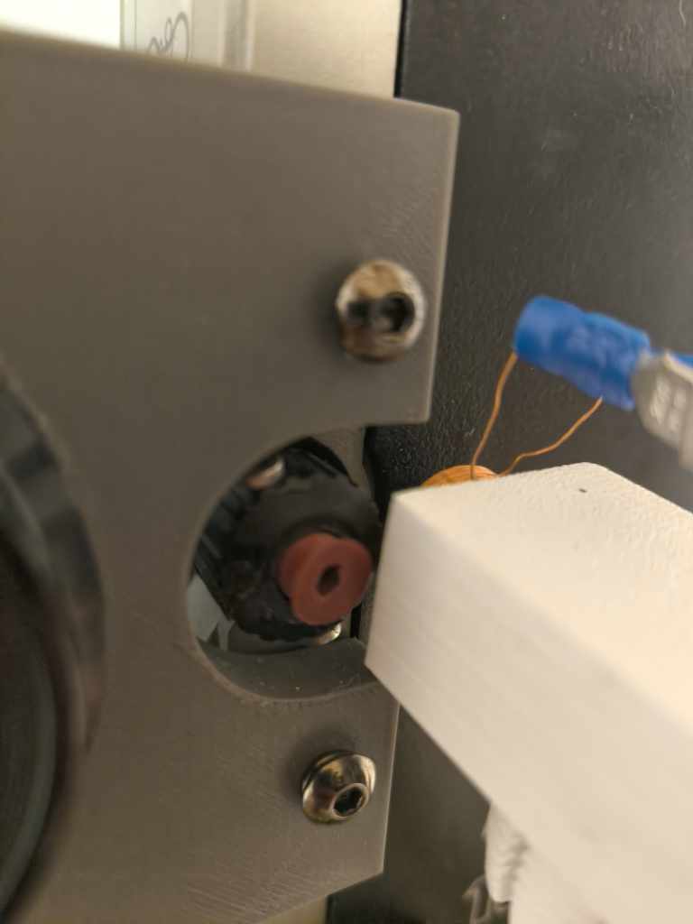 Für den Anschluss der Magnetspule sollte ein abgeschirmtes Kabel verwendet werden, um Störeinstreuungen von außen zu vermeiden – ist aber keine Pflicht. Ich habe ein entsprechendes Cinch-Kabel verwendet. Da ich nicht besonders gut löten kann, habe ich mich der Einfachheit halber für eine Befestigung mit Kabelschuhen entschieden.
